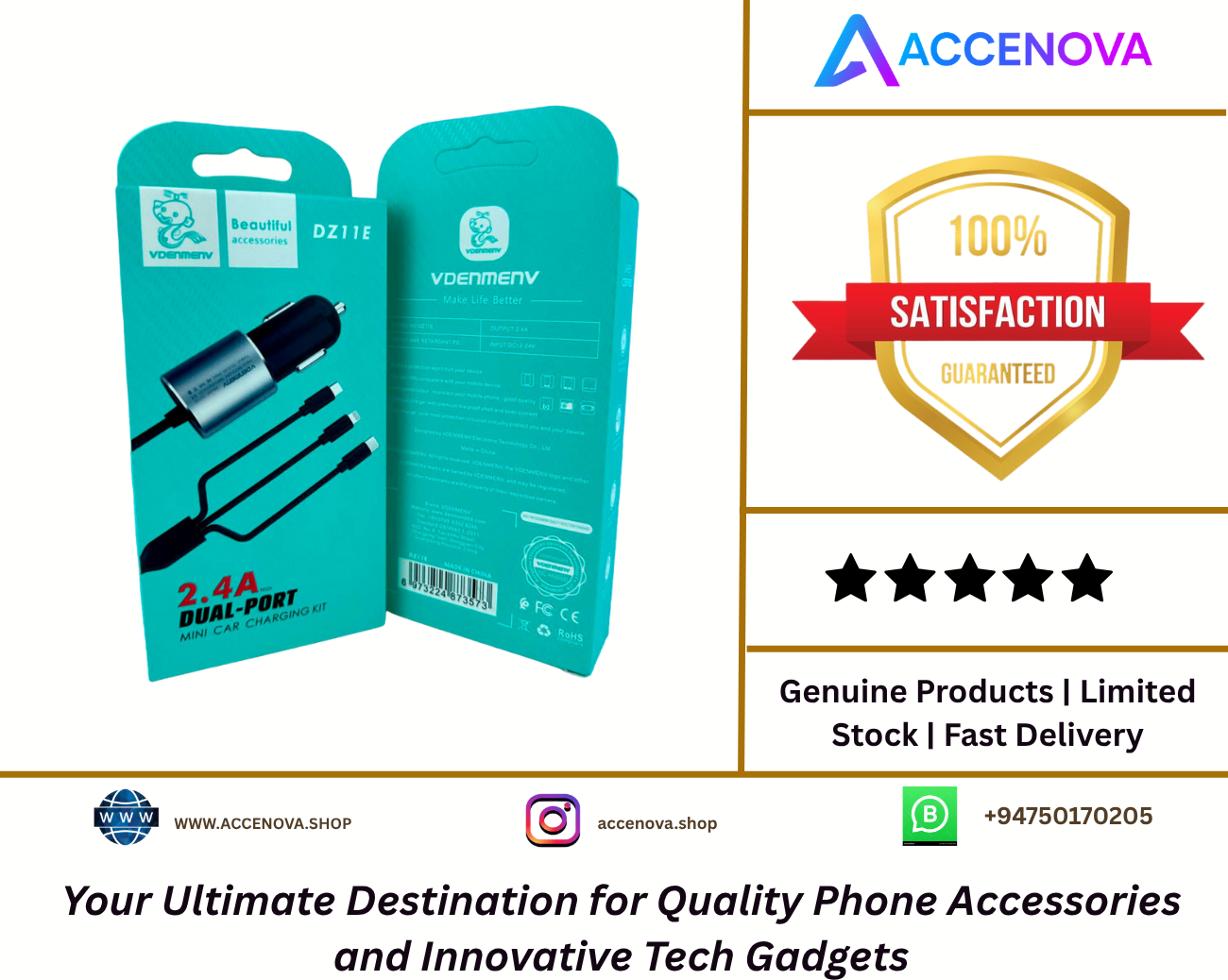 DZ11E 2.4A Dual Port Mini Car Charging Kit
